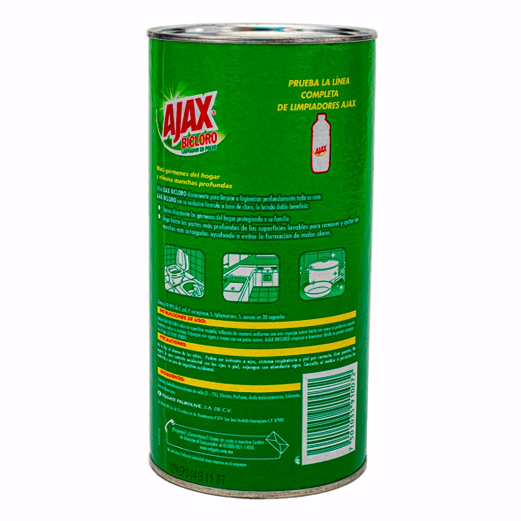 Limpiador en Polvo Multiusos Ajax Bicloro te ayudará a conseguir una limpieza profunda en toda tu vajilla, elimina la grasa más pegadas, los restos de comida y los gérmenes que producen los malos olores. Lo puedes utilizar tambien en la estufa, dentro del refrigerador y manchas del baño, especialmente entre los azulejos.